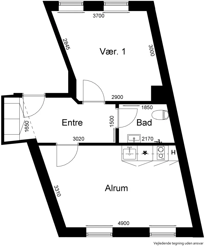 17 lejligheder, 25-35 m2. Fra kr. 3.181,- ekskl. forbrug.